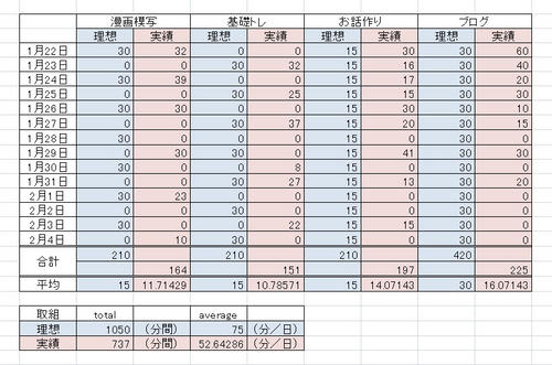 1月21日に立てた「新たな計画ver.1.21」について、実際にどうだったかデータ集計しました。