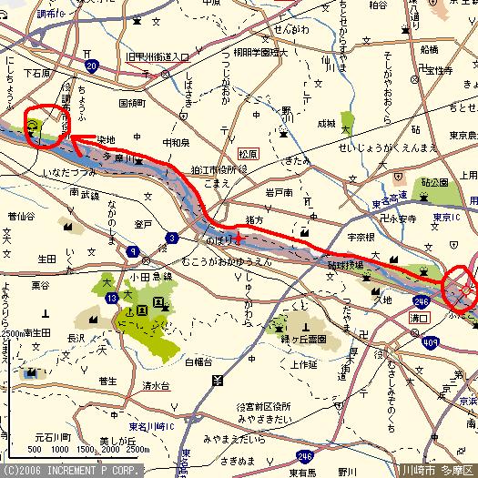 多摩川の河川敷ってのは広場みたくなってて、それがずーっと続いているのね。