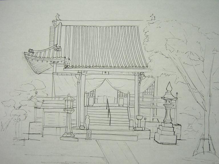 前日までは瓦屋根を描くのがしんどかったけど、この日は心機一転、細かいところもちゃんと描く力をつけようと頑張った。