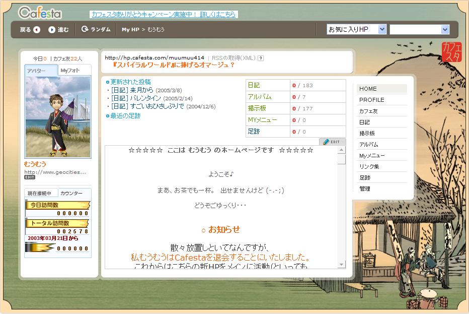 でも、就職して忙しくなったということと、どんどん使いづらくなっていったことから、2005年3月をもって、退会しました。