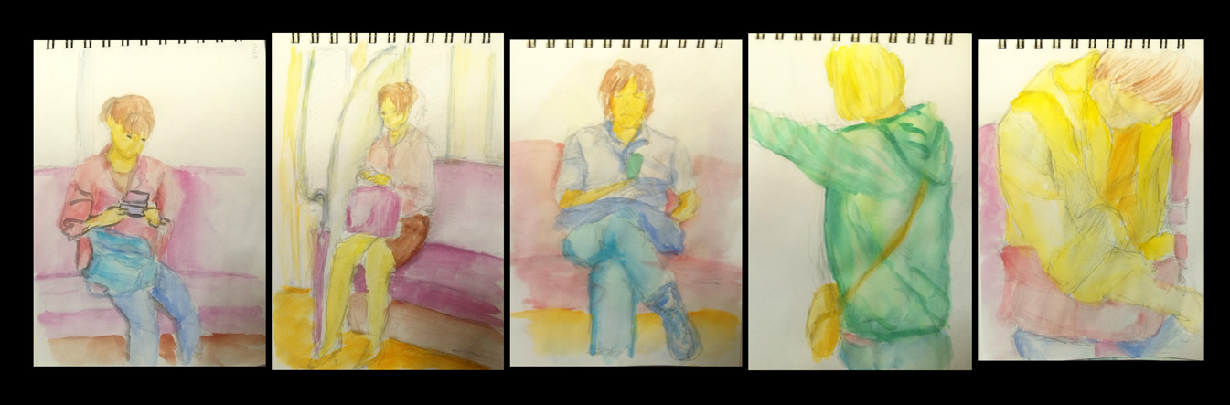 そんなわけで、新宿往復の電車でのスケッチです。
