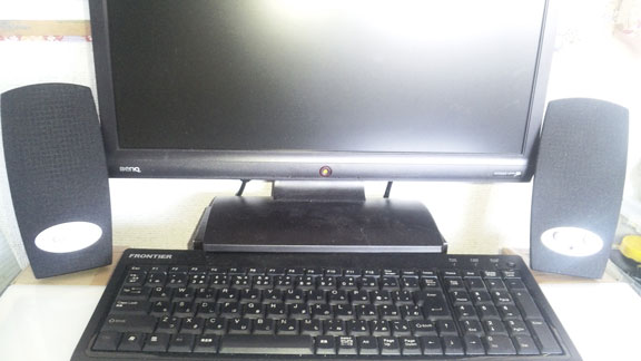 机の上にトレス台があるのですが、それより低いところにスピーカーがあって、なんか気になっていたのです。