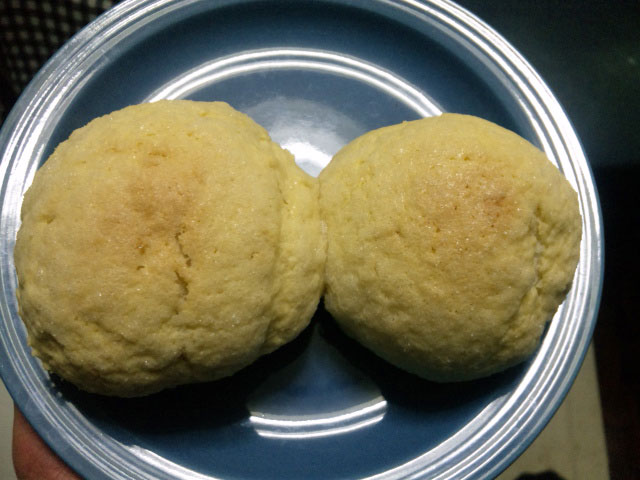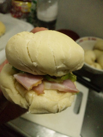でも、焼きがいまいちだったのか、こねるのが微妙だったのか、発酵が足りなかったのか、ちょっとねっちょり粉っぽい感じになってしまいました。