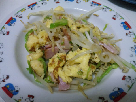 ベーコンとピーマンをはさんでみたら、ちょっといい感じに!