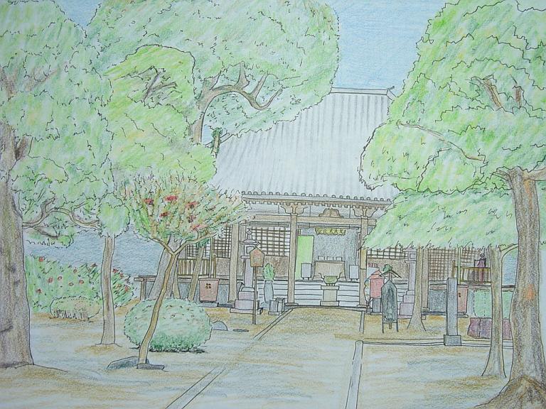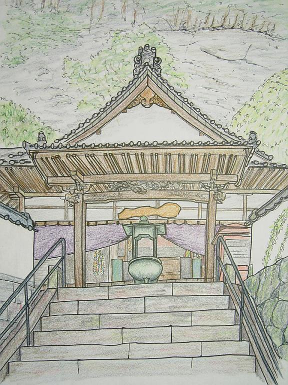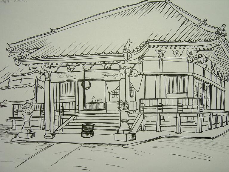 絵の方は、境内の外から東院の南大門を描いてみました。