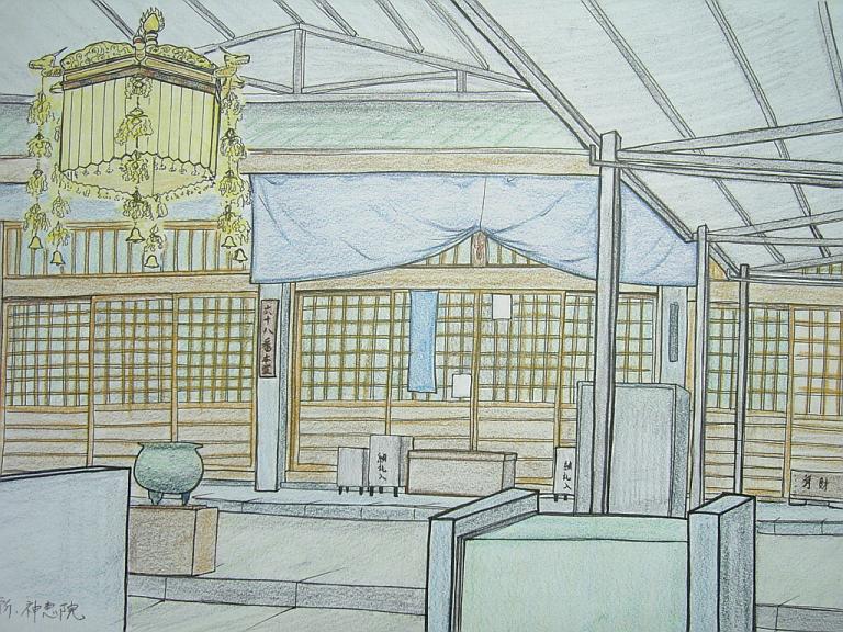 そんなわけで、立派な本堂の脇に小ぢんまりと佇んでいた春日明神をさらさらと描いてしまいました。