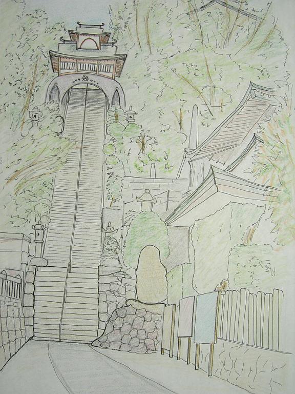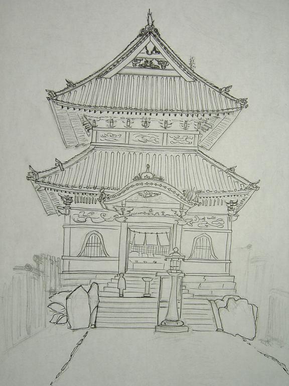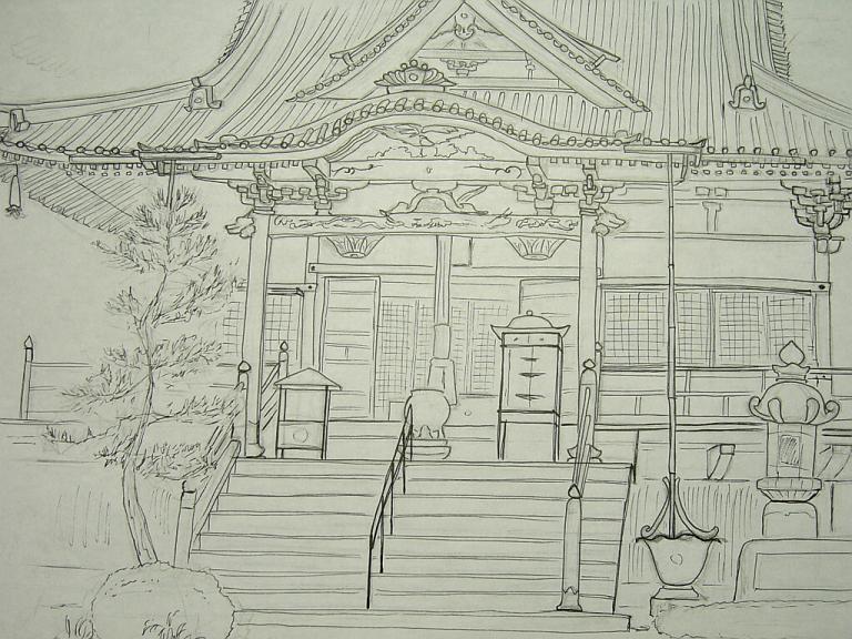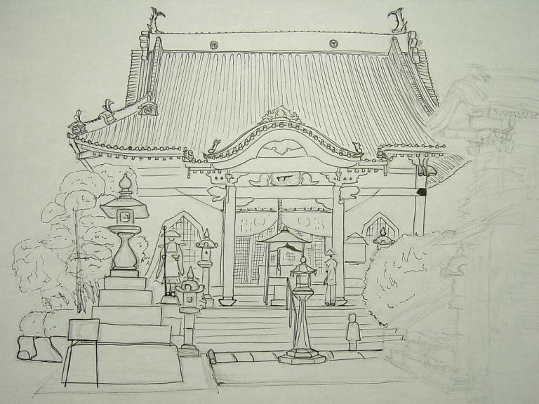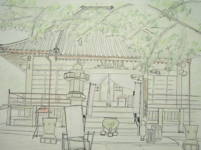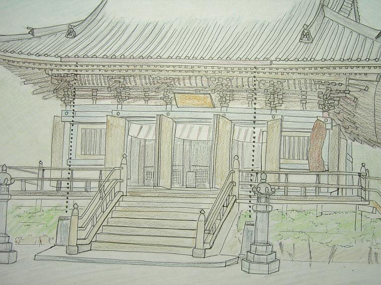 屋根の梁の部分とかがうまく描けず、時間かけた割には、そのへんテキトウに仕上げてしまいました。