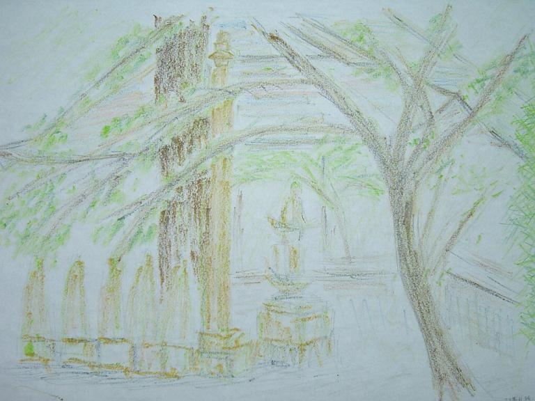 シンボルである(?)鶴の像が描けたので、よしとしました。
