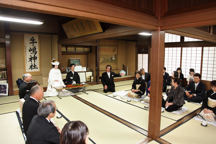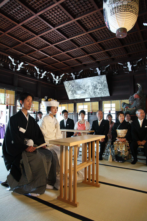 親族紹介は今やるか式後社殿で行うか訊かれて、なんとなく社殿で、と答えてしまったものの、両家向かい合わせで座ってて、特に話すことも無くただ待っているという間がけっこうつらくて、奥さんと小声で相談し、やっぱり今やっちゃいます、と変更を申し出た。