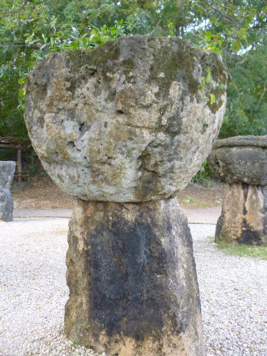 形状は、写真のように、直立した石柱「ハリギ」の上に、お椀型の石「タサ」が乗った、エリンギのような形をしています。