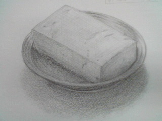 デッサンの課題で木綿豆腐を描いた。