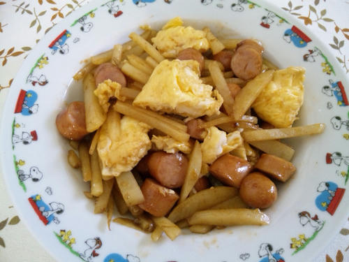 お料理34日目(8月31日) 「じゃがいもとソーセージのソース炒め」