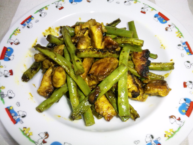 お料理37日目(9月6日) 「いんげんと鶏肉のカレー炒め」