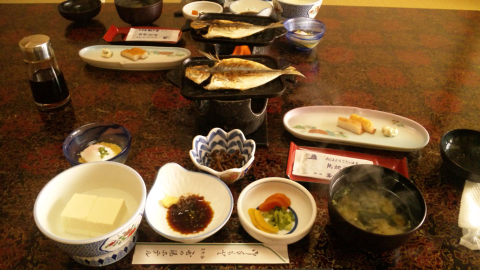 お部屋係の人に布団をあげてもらって、朝ごはんです。