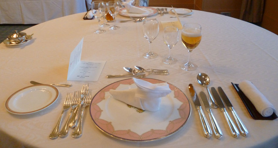 料理はてっきりホテル内のどこぞのレストランで食べるものと思っていたのですが、試食会場へ案内されたら、そこは自分たちが会食会を行う宴会場でした。